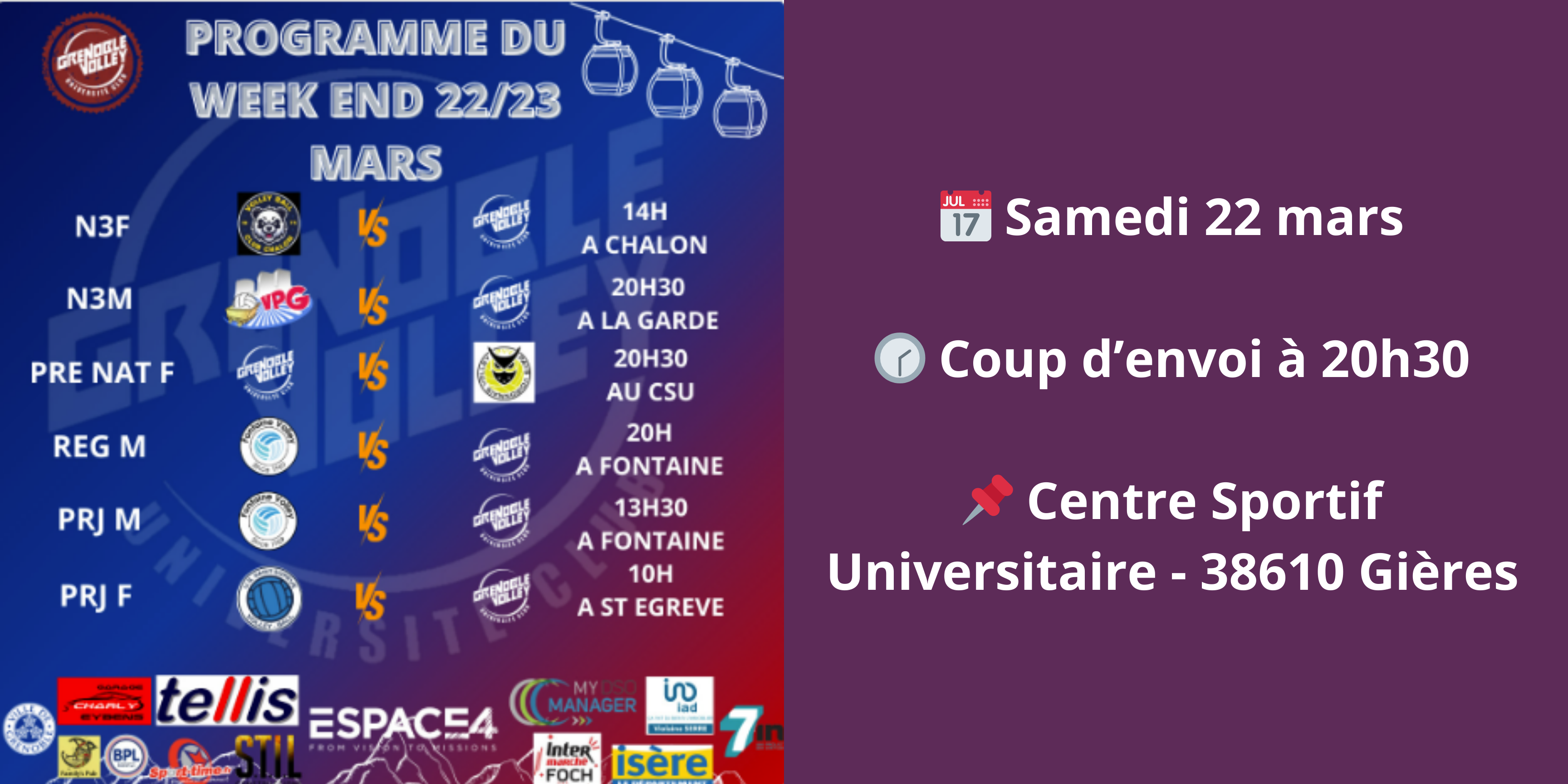 📍 Centre Sportif Universitaire – rue de la Passerelle, 38400 Saint-Martin-d’Hères