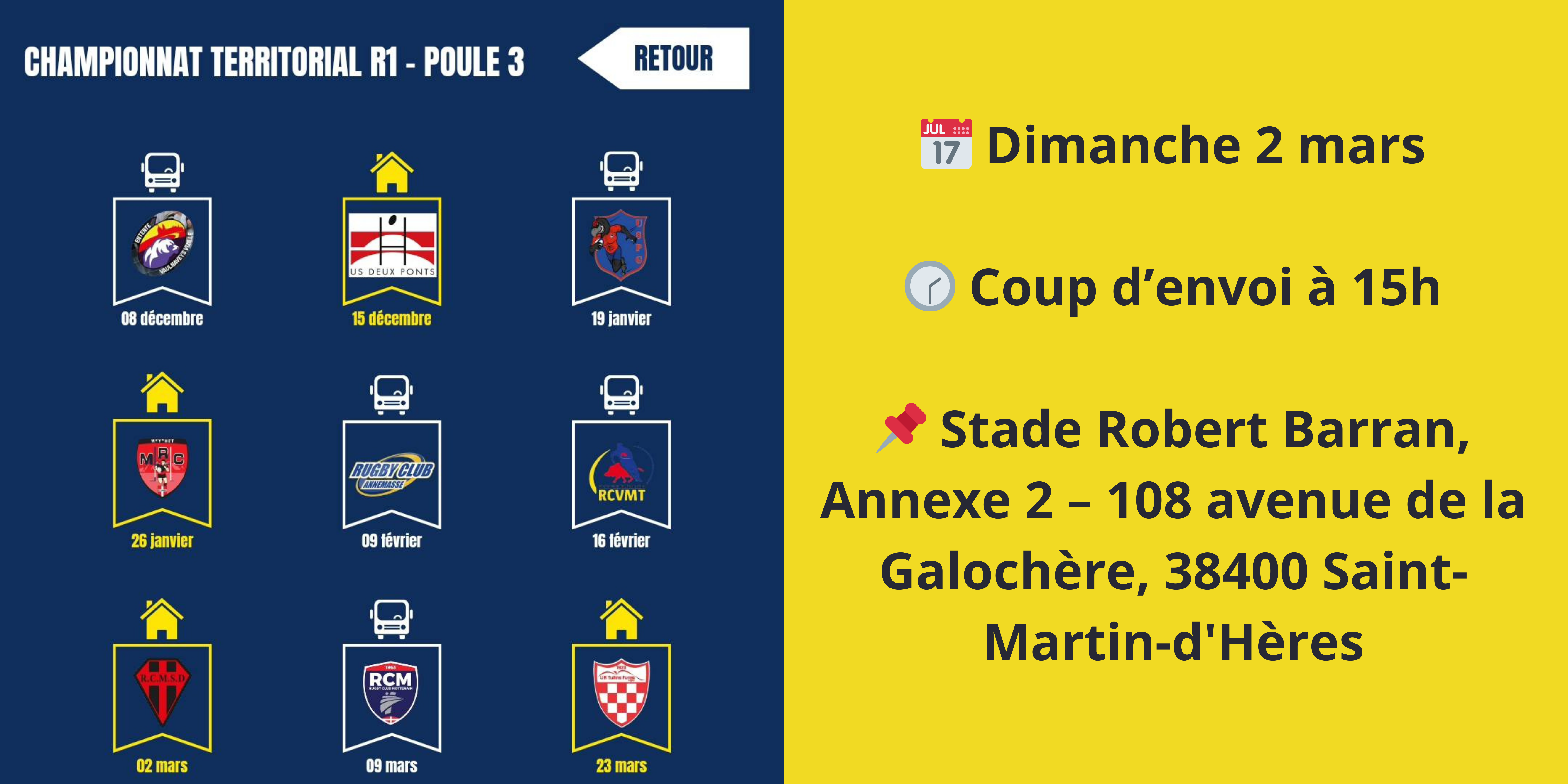 Le GUC SMH Rugby accueille l’équipe du RC Matheysin.
