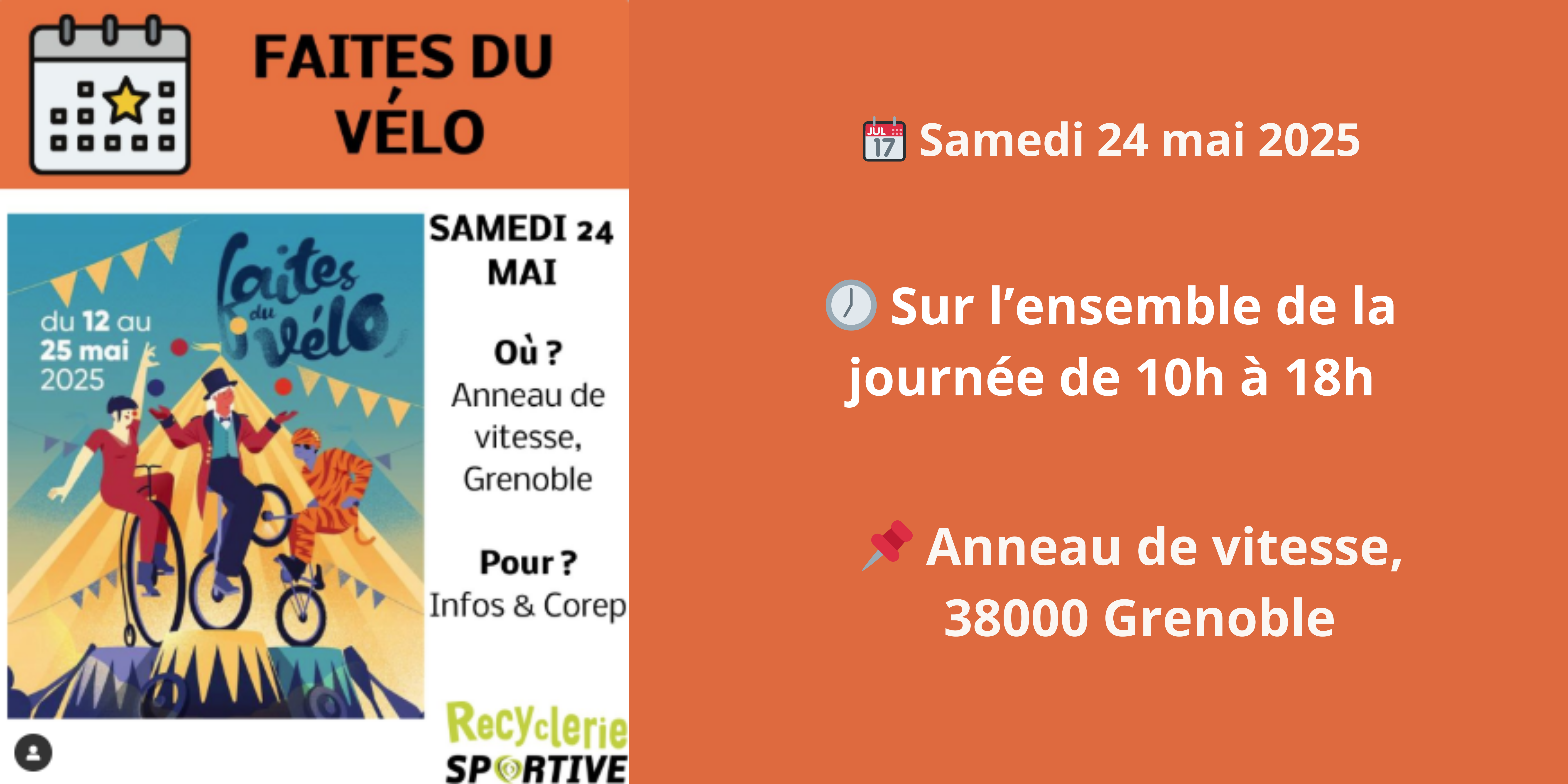 Rdv samedi 24 mai 2025 à partir de 10h à l’anneau de vitesse de la ville de Grenoble pour participer à un atelier mobile géant ainsi qu’à des essais de vélos rigolos