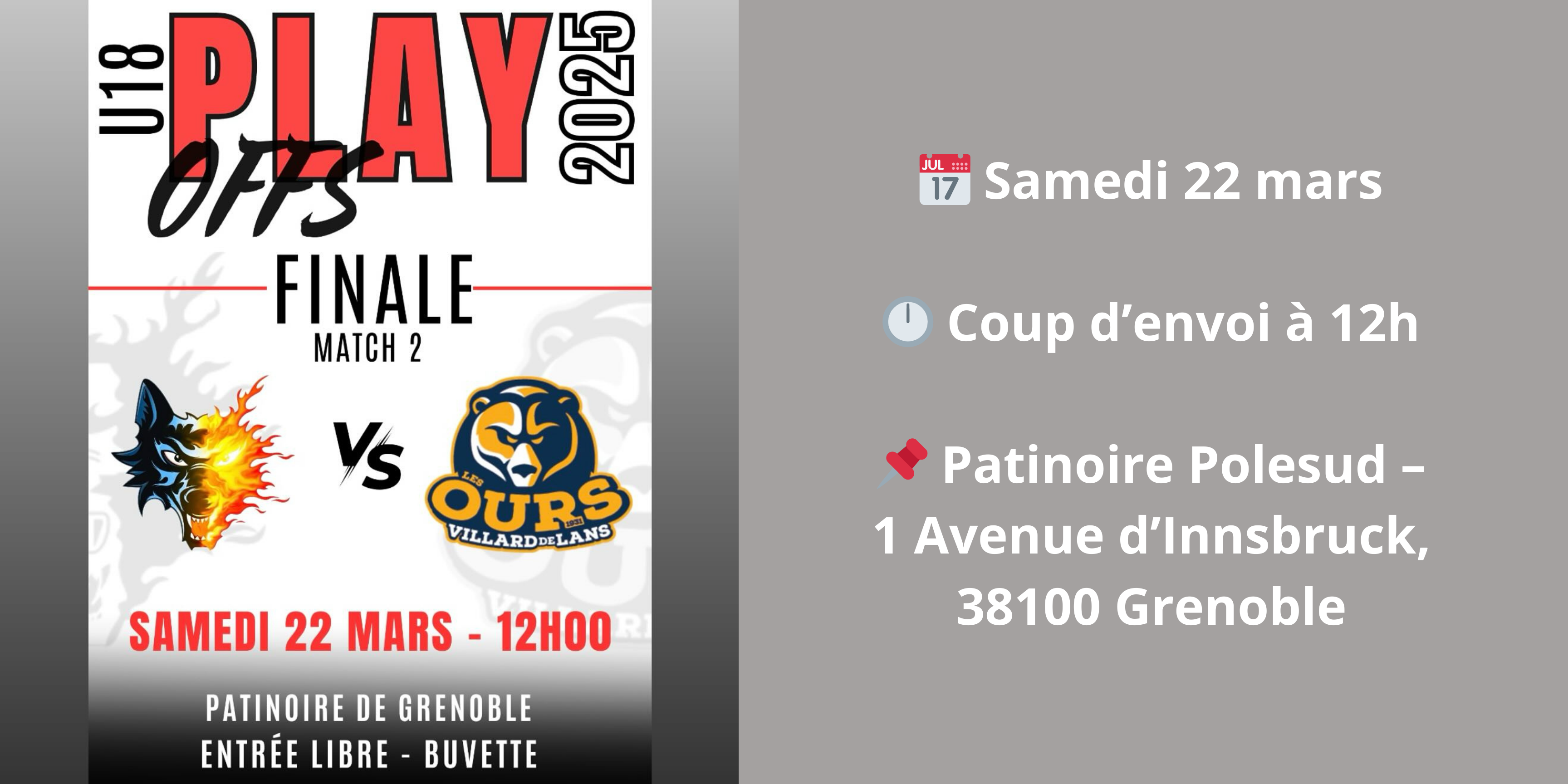 Les jeunes hockeyeurs des Brûleurs de Loups sont en finale face aux Ours de Villard de Lans. Venez les encourager ce samedi 22 mars à la patinoire de Grenoble.