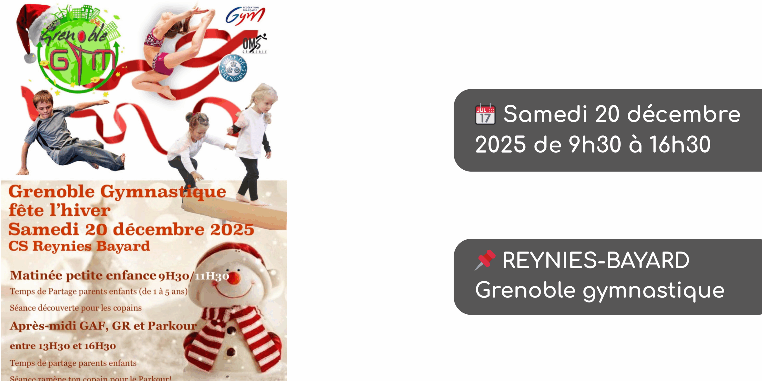 Grenoble gymnastique vous invite à célébrer l’hiver avec une journée de gymnastique et d’amusement pour tous les âges.