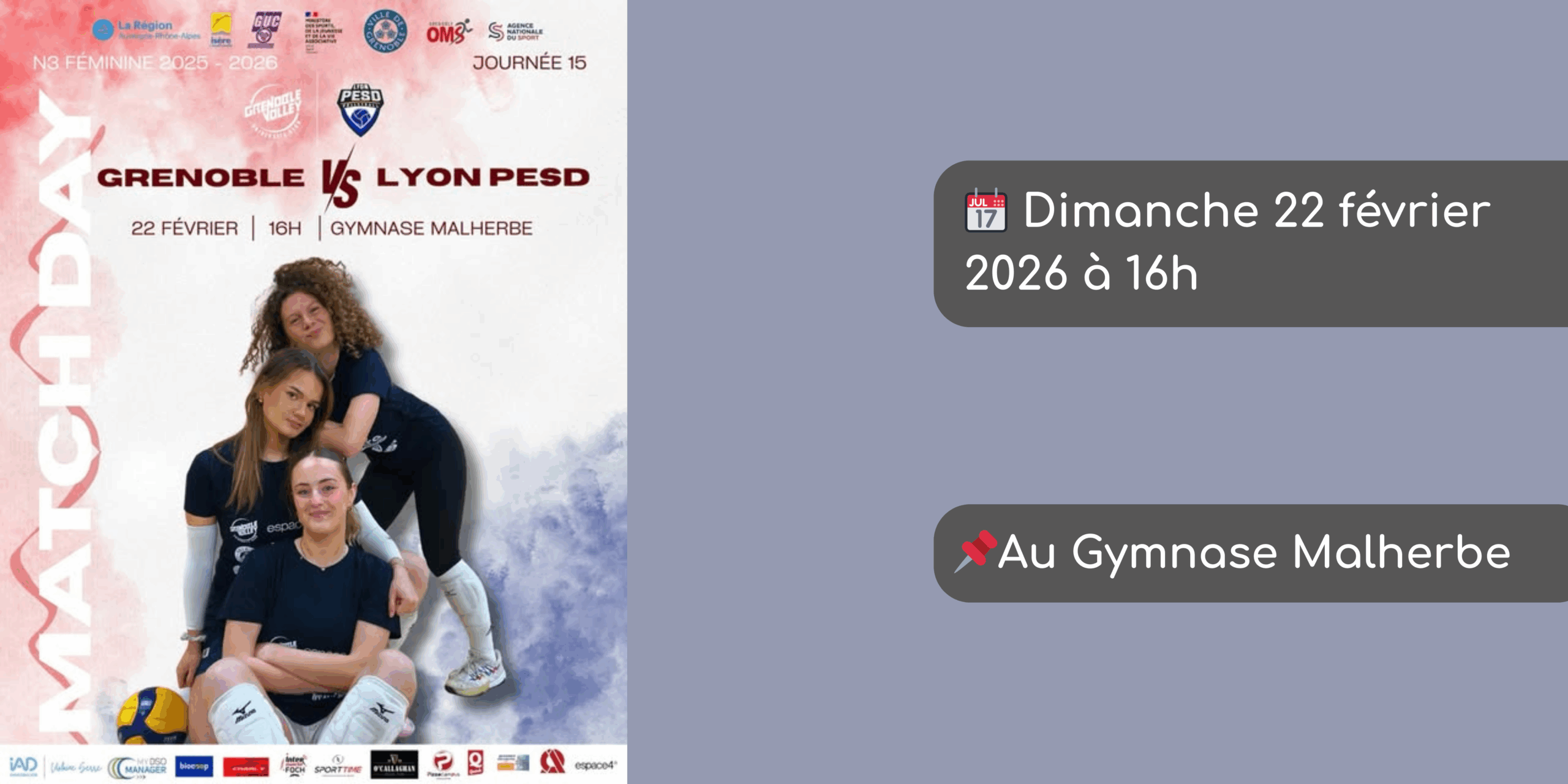 MATCH À DOMICILE pour les féminines du Volley Grenoble UC
