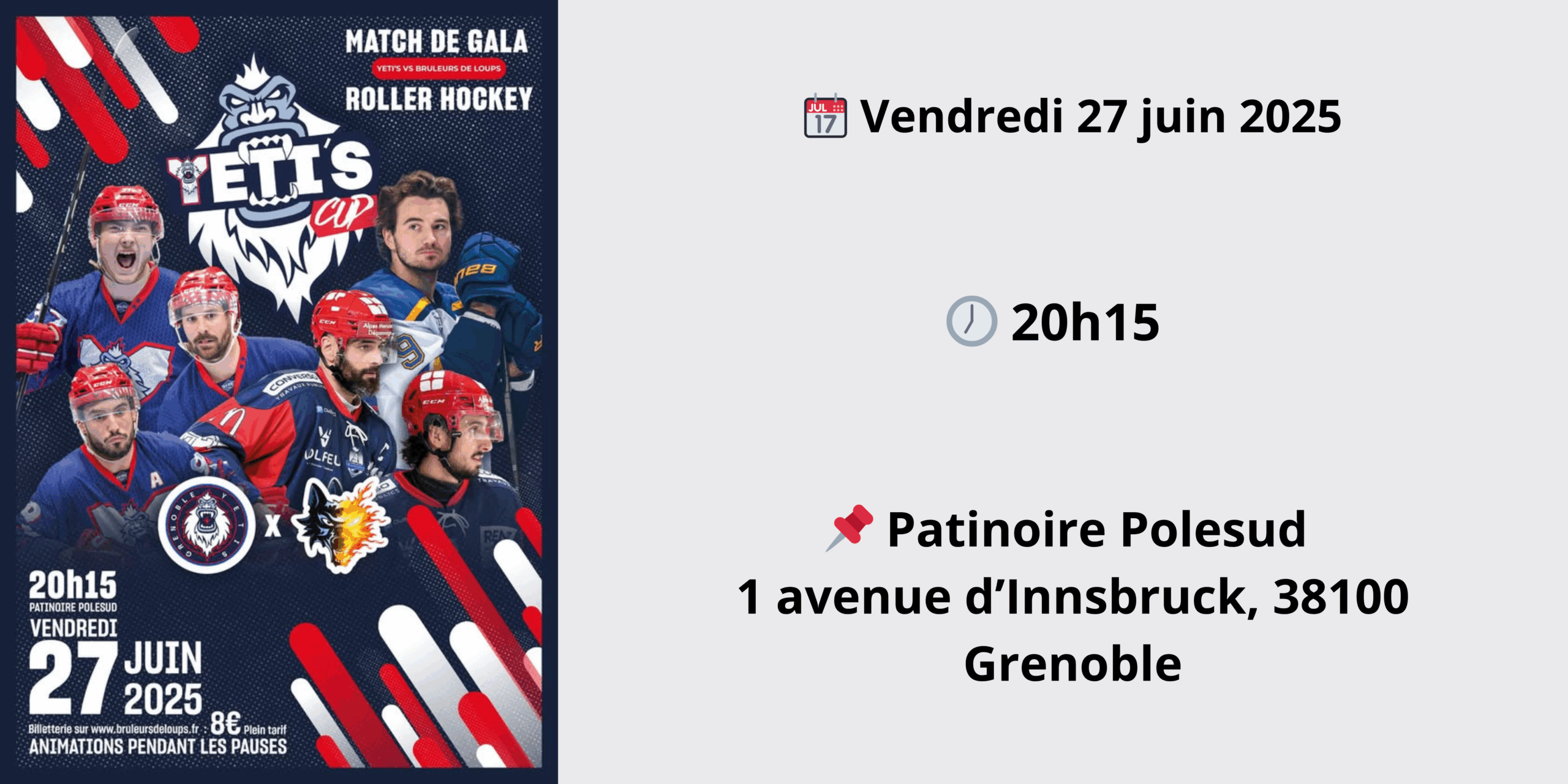 ème édition de la Grenoble Yeti’s Cup, un match de gala inédit réunira les deux équipes emblématiques de Grenoble, qui s’affronteront sur la piste déglacée de Polesud !