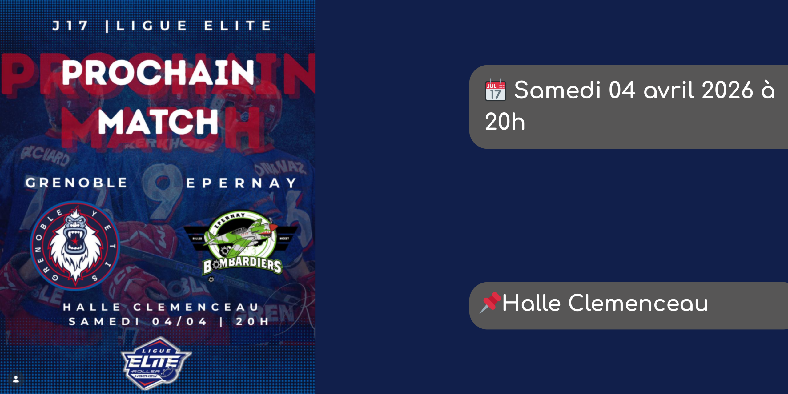 Les Yeti’s Grenoble vous donnent rendez-vous pour une soirée face à Épernay, tout récent vainqueur de la Coupe de France 🏆