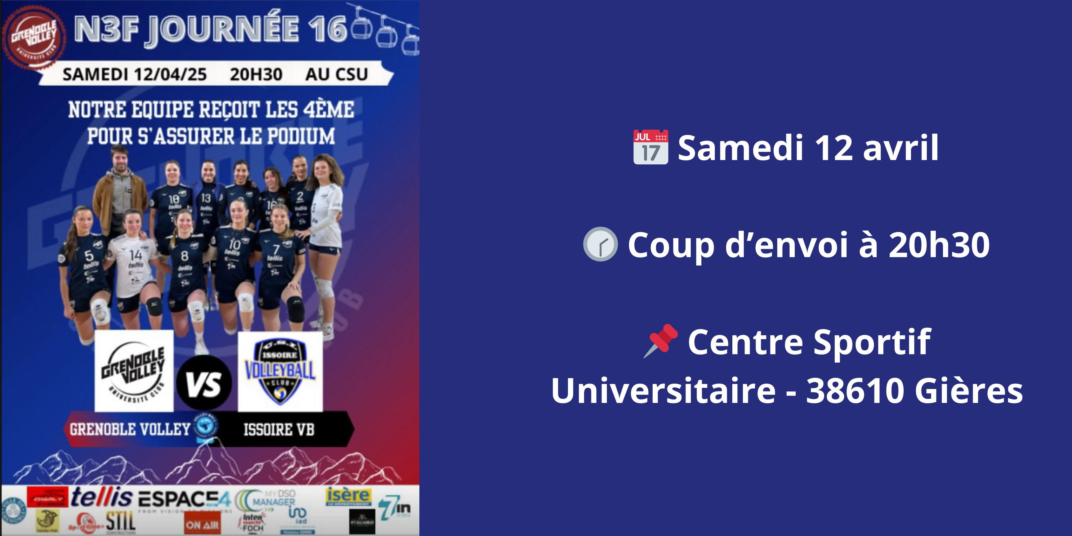 Ce samedi 12 avril à 20h30 la nationale féminine 3 du Grenoble volley université club reçoit Issoire au gymnase du CSU.