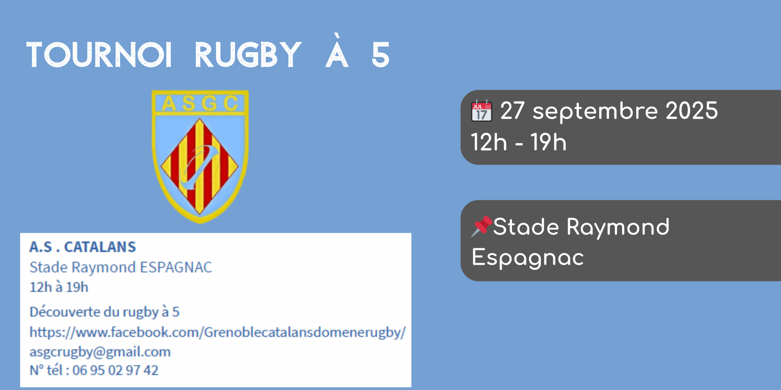 Tournoi Rugby à 5 A.S CATALAN Découverte du rugby à 5 ascgrugby@gmail.com 06 95 02 97 42