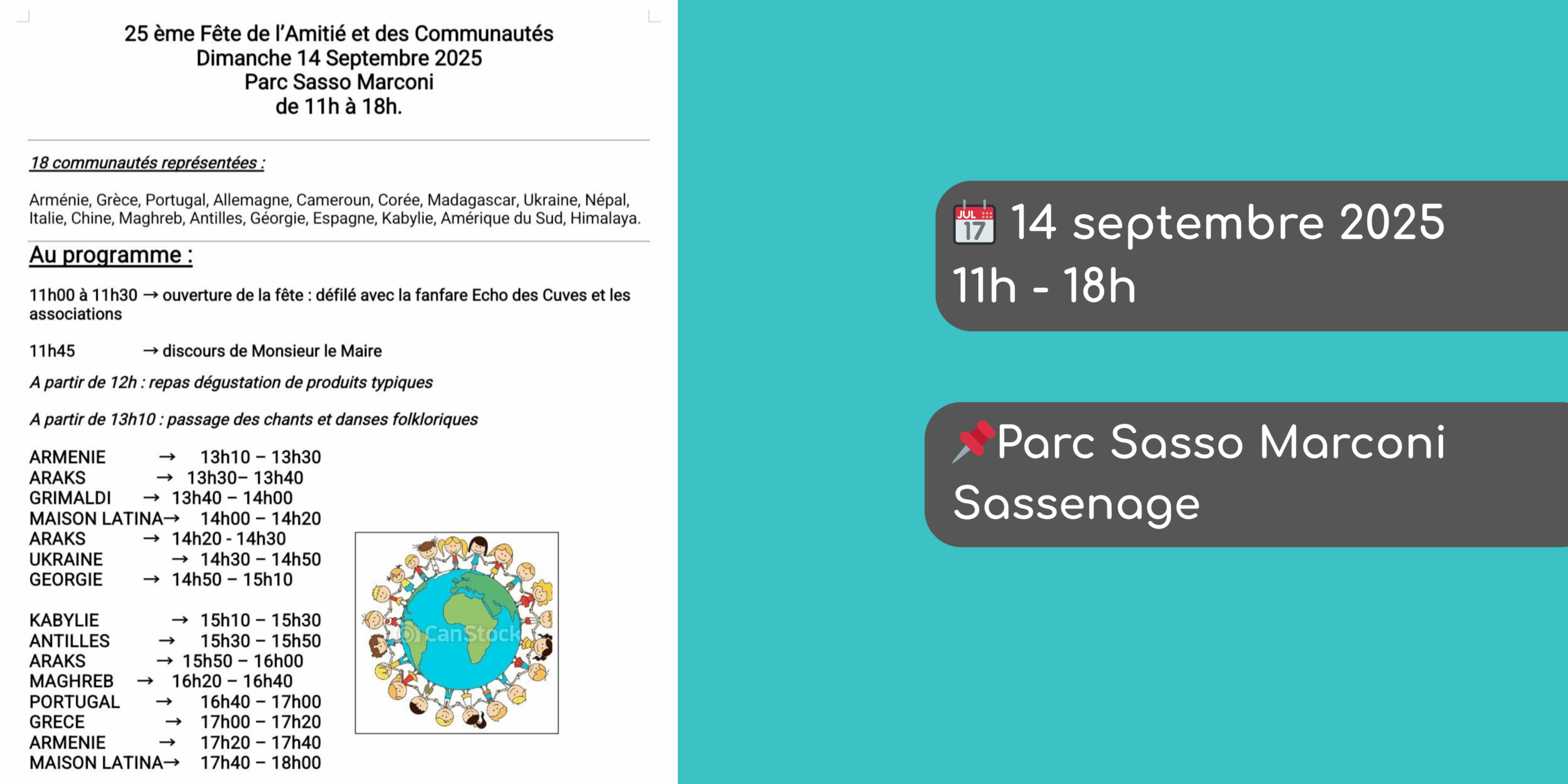 Voici le programme complet de la journée. L'association danse grecque de Grenoble présente à 17h sur le podium, à 11h au défilé en costumes dans les rues de Sassenage et toute la journée au stand de spécialités culinaires grecques. Venez nombreux !