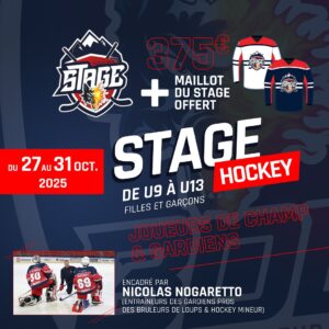 Stage de hockey sur glace afin d’apprendre et de perfectionner les différentes techniques de base.