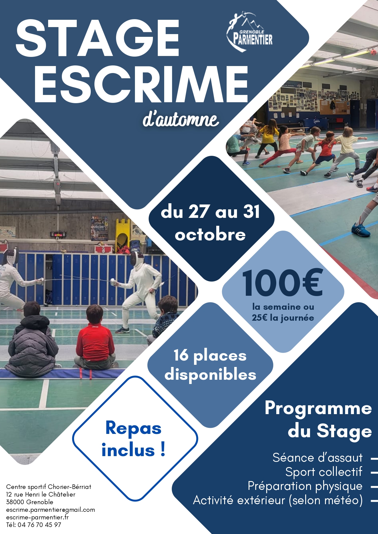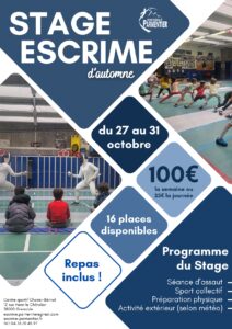 Stage d’escrime avec séance d’assaut, préparation physique, et activités extérieurs.