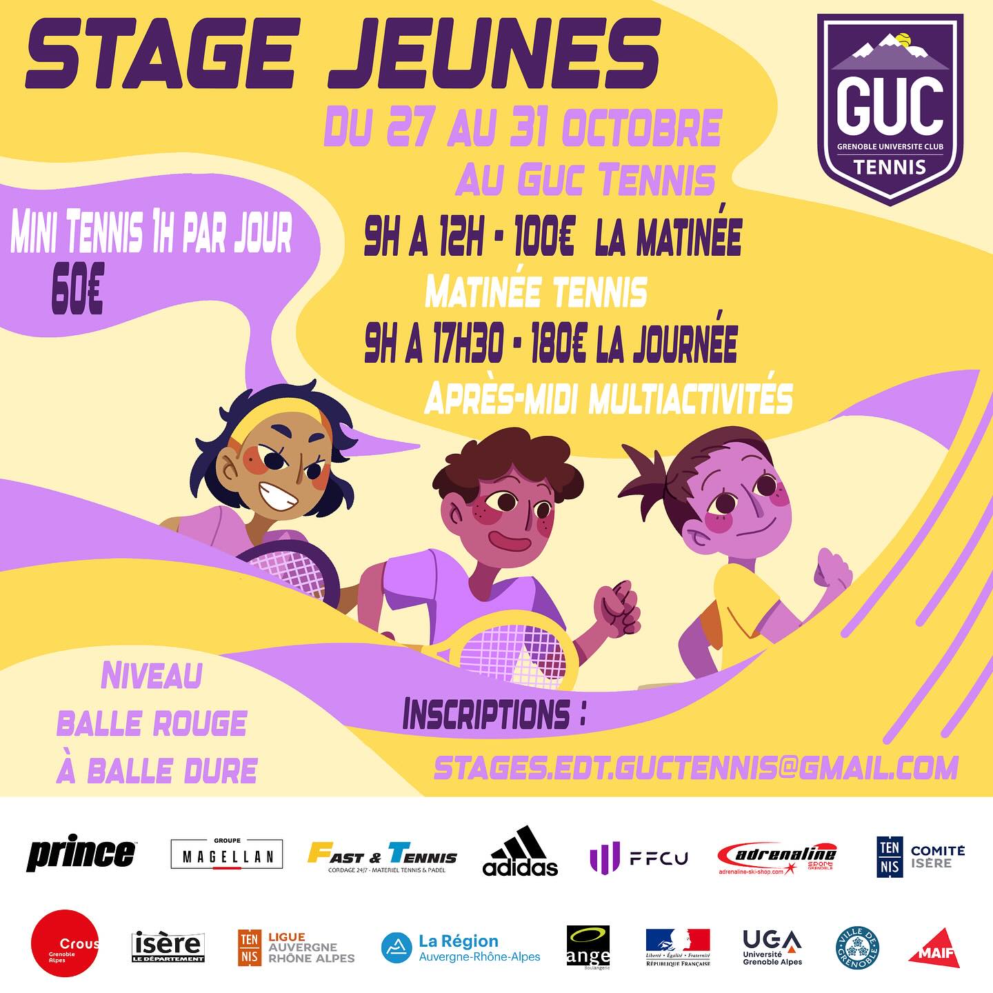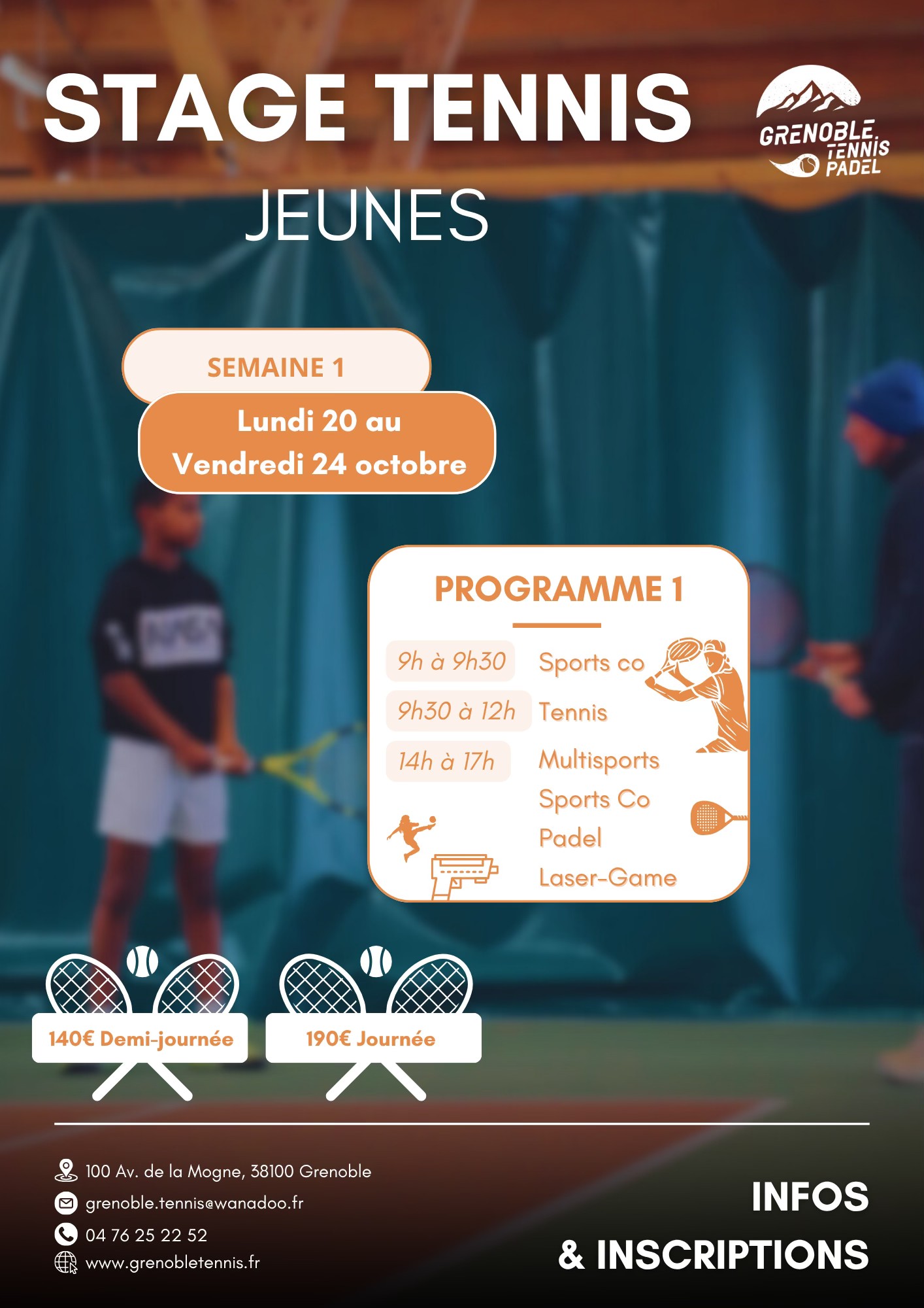 Stage de tennis avec des cours techniques et tactiques le matin de 9h30 à 12h. L’après-midi, différentes activités telles que du padel, sports collectifs, laser game et badminton.