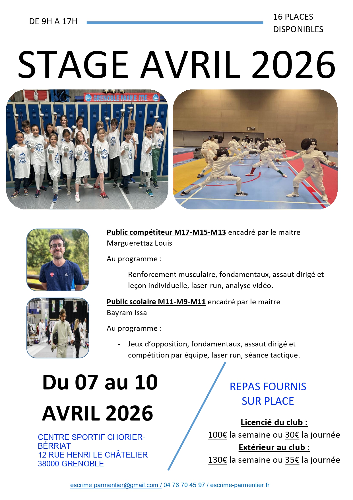🗓️ Mardi 07 avril au vendredi 10 avril & Lundi 13 avril au vendredi 17 avril